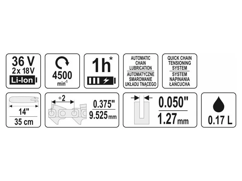 Akkus láncfűrész 35 cm 2 x 18 V (akku + töltő nélkül) YATO
