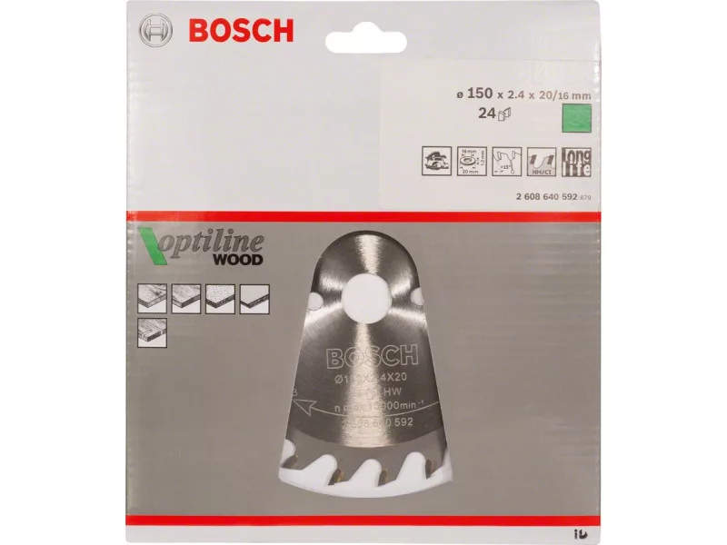 BOSCH Fűrésztárcsa fához 150 x 20/16 x 2,4 mm / 24T Optiline Wood ATB