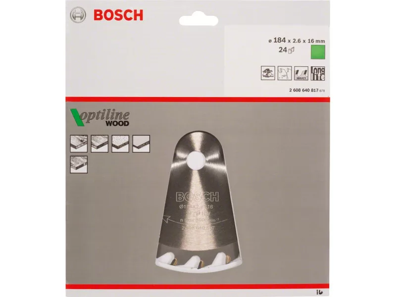 BOSCH Fűrésztárcsa fához 184 x 16 x 2,6 mm / 24T Optiline Wood ATB