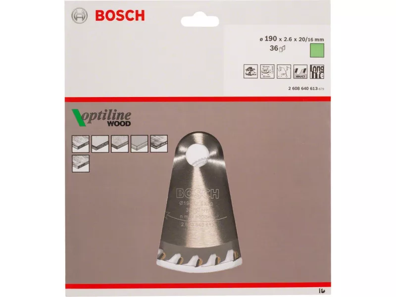BOSCH Fűrésztárcsa fához 190 x 20/16 x 2,6 mm / 36T Optiline Wood ATB