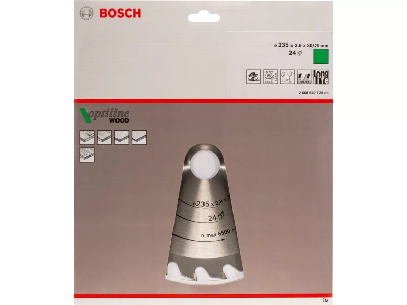 BOSCH Fűrésztárcsa fához 235 x 30/25 x 2,8 mm / 24T Optiline Wood ATB