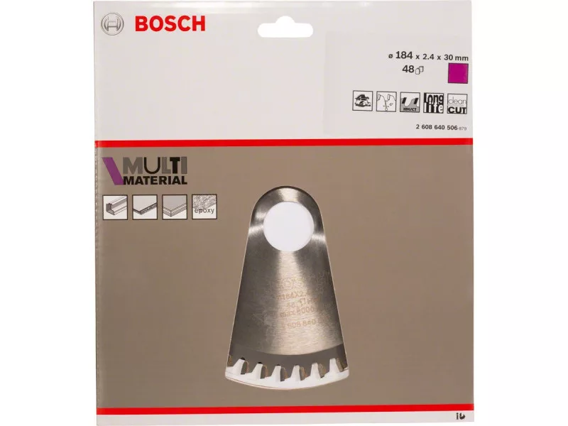 Nagy teljesítményű vágás - A Multi Material körfűrészlap anyagok széles választékának nagy teljesítményű vágására alkalmasKiváló minőségű, precíziósan köszörült keményfém fogazata a fűrészlapot elég robusztussá teszi különféle anyagok vágásához, míg mérettartó, edzett (> 40 HRC) SK5 acél hordozólapja a pontosságot biztosítjaTovábbá a fűrészlap tágulási hézagai használat közben csillapítják a rezgéseket, ami csökkenti a zajt és a hőképződéstA fűrészlap nemvasfémek, alumínium, műanyagok, epoxigyanta és fa vágására használhatóFelszerelhető gérvágókra, csúszó gérvágókra és asztali fűrészgépekreA Multi Material körfűrészlap magas-alacsony háromszor forgácsoló köszörülésű (HLTCG) fogazata robusztus az abrazív anyagok megmunkálásáhozSzűkítőgyűrűkkel vagy szűkítőgyűrűk nélkül használható, hogy passzoljon a különböző méretekhez