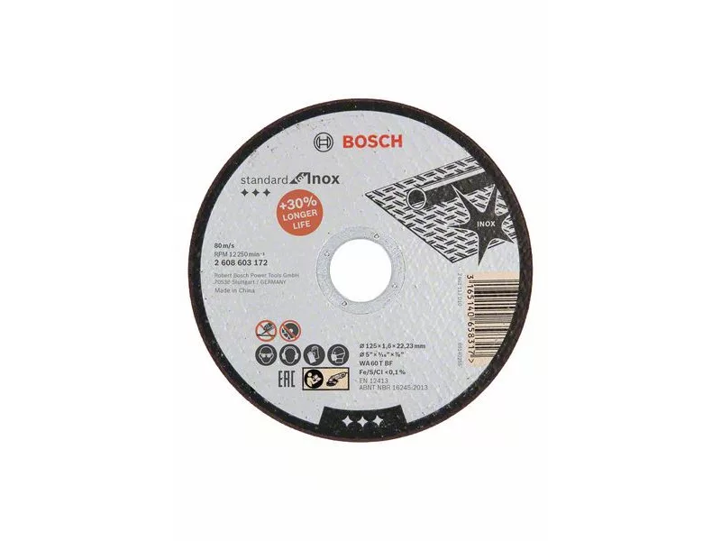 BOSCH Vágókorong fémre 125 x 1,6 x 22,2 mm egyenes inox WA 60 T BF
