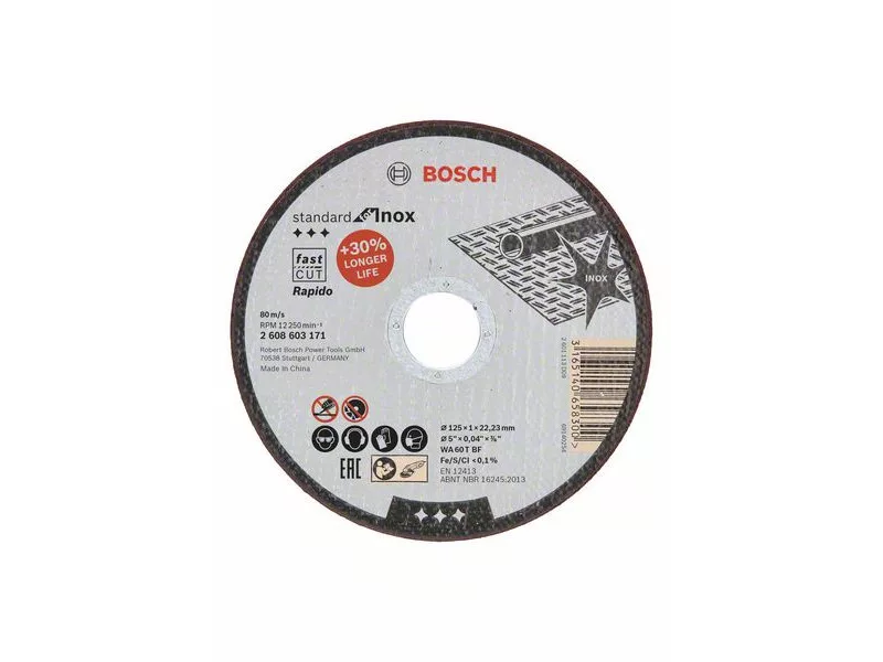 BOSCH Vágókorong fémre 125 x 1,0 x 22,2 mm inox egyenes WA 60 T BF Rapido