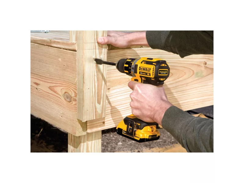 Kefe nélküli motor technológia kiváló hatékonyság. Kompakt és könnyű. 2 mechanikus sebesség, teljes fém szerkezet a hosszú élettartam érdekében. 15 nyomaték állítási lehetőség, csavarozás különféle anyagokba különböző méretű csavarokkal. Intelligens kapcsoló kialakítás lehetővé teszi a teljes ellenőrzést az alkalmazásnak megfelelően. Fényes fehér LED a szerszám talpánál késleltetés funkcióval a jobb láthatóság érdekében, továbbá használható a zseblámpa funkció. Ergonomikus kialakítás és gumírozott fogantyú a megnövelt munkavégzési kényelem érdekében. Fém öv akasztóval és mágneses bit tartóval ellátva. Része az intelligens Li-Ion XR sorozatnak célja a megnövelt hatékonyság és a megnövelt gyorsaság különböző alkalmazásoknál. Fúrásteljesítmény (fa / fém): 38 mm / 13 mm Technikai adatok Akkumulátor típusa Li-Ion Akkumulátorral együtt 2 Akkumulátor kapacitás (Ah) 2 Teljesítmény (W) 360 Max. nyomaték (Nm) 23 / 60 Tokmány mérete (mm) 1,5 – 13 Ütésszám (ütés/perc) 0–10 200 / 34 000 Üresjárati fordulatszám (f/p) 0–600 / 2000 Töltő típusa Töltővel szállítva Feszültség (V) 18 Súly akkumulátor nélkül (kg) 1,62