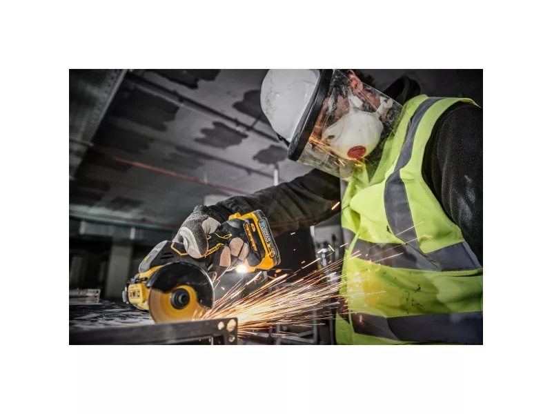 Ideális minden vágáshoz: fémhez, műanyaghoz, kerámiához, porcelánhoz, gipszkarton vagy cementlapokhoz.Kétirányú tárcsa forgás, a tárcsa forgásiránya gyorsan és egyszerűen váltható.A LED-es tárcsa megvilágítás, a fényes LED-es munkadarab meg- világítás jobb láthatóságot biztosít szűk és sötét munkaterületen.A levehető, egyéb szerszámok nélkül állítható porvédő kompatibilis a DEWALT AirLock rendszerrel.1× DT20590, 1× DT20591, 1× DT20592 tárcsával, valamint elszívás burkolattal szállítjuk. Technikai adatok Akkumulátorral együtt Akkumulátor nélkül szállítva Feszültség (V) 18 Üresjárati fordulatszám (f/p) 20 000 Tárcsa átmérő (mm) 76 Max. vágási mélység (mm) 22 Tengelymenet 10 mm Töltő típusa Töltő nélkül szállítva Súly akkumulátor nélkül (kg) 0,8