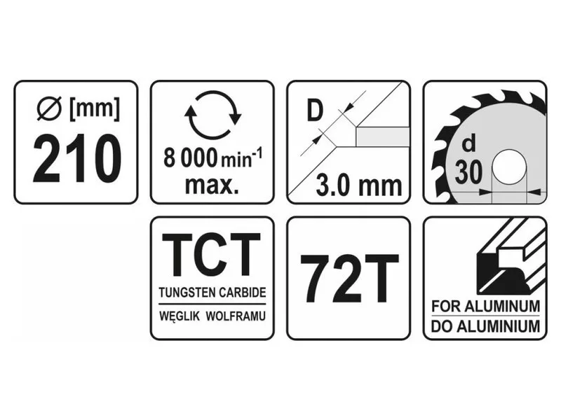 YATO Fűrésztárcsa alumíniumhoz 210 x 30 x 2,2 mm / 72T