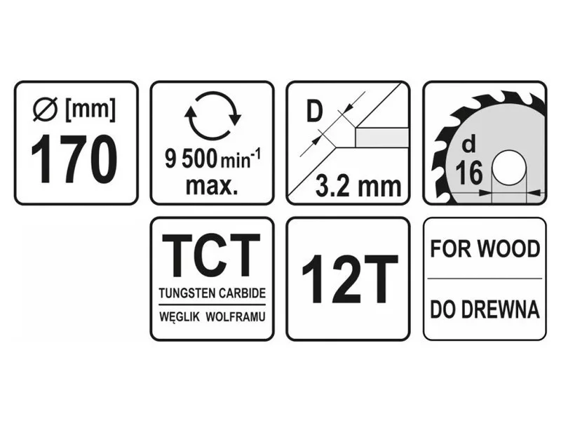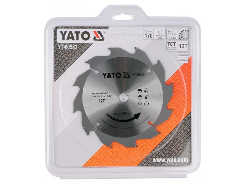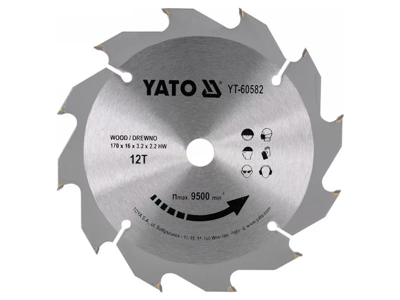 YATO Fűrésztárcsa fához 170 x 16 x 2,2 mm / 12T