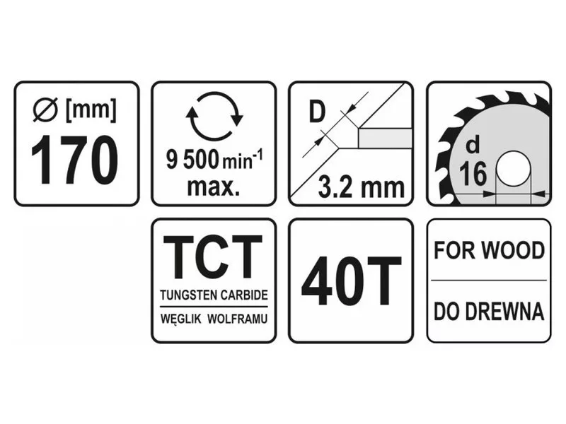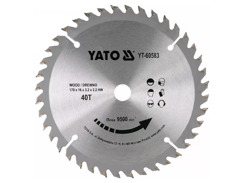 Fűrésztárcsa fához 170x16 mm 40T YATO