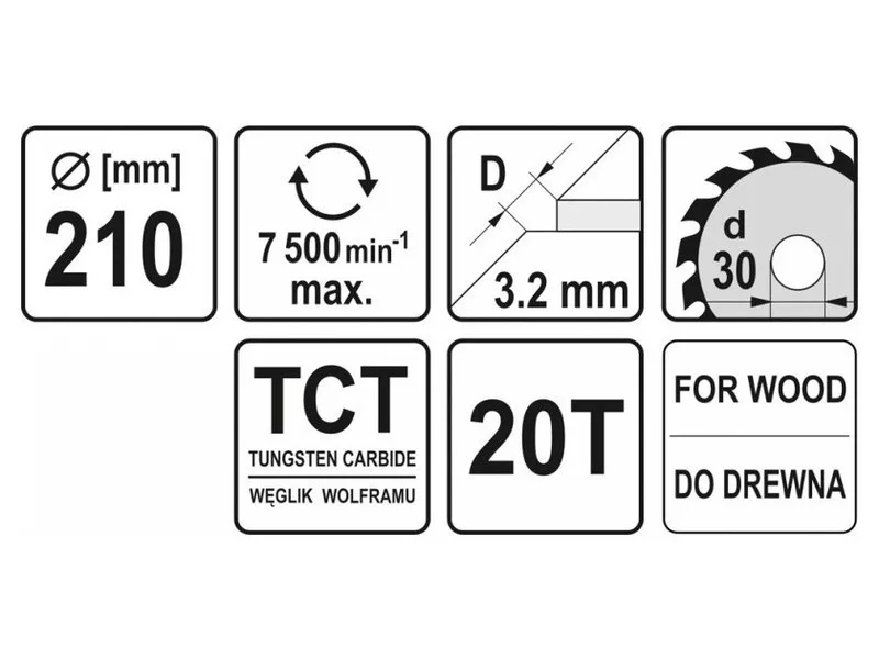 YATO Fűrésztárcsa fához 210 x 30 x 2,2 mm / 20T