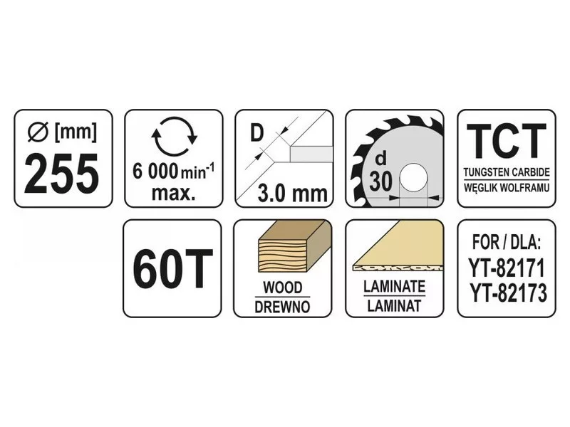 Fűrésztárcsa fához 255x30mm 60T YATO
