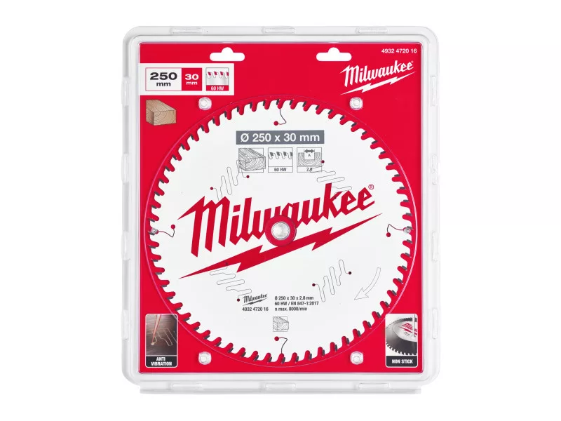 Milwaukee Körfűrészlap gérvágókhoz (Fához) 250x30x2.8x60 ATB - 1 db 4932472016