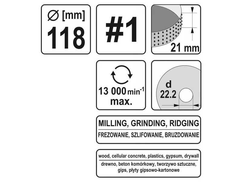 YATO Ráspolykorong durva #1 118 x 21 mm