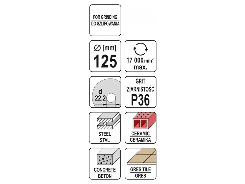 YATO Univerzális csiszolókorong 125 x 22,2 mm / P36
