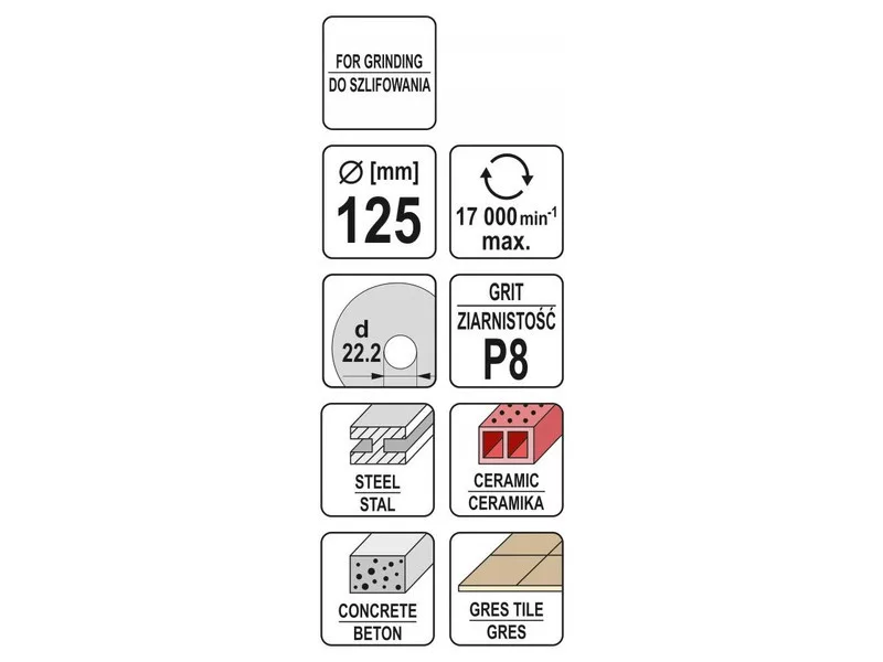 YATO Univerzális csiszolókorong 125 x 22,2 mm / P8