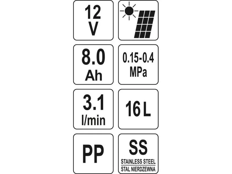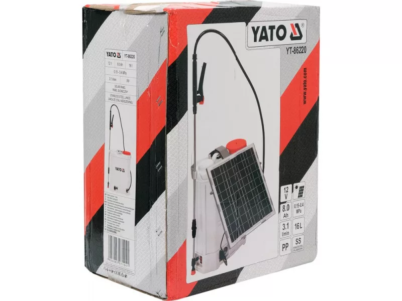 YATO Akkus és napelemes háti permetező 16 liter 12 V 8,0 Ah