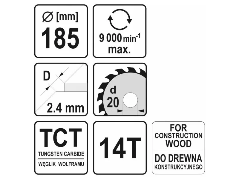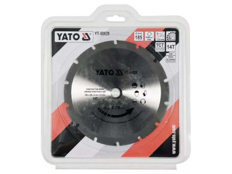 YATO Fűrésztárcsa szöges fához 185 x 20 x 2,4 mm / 14T