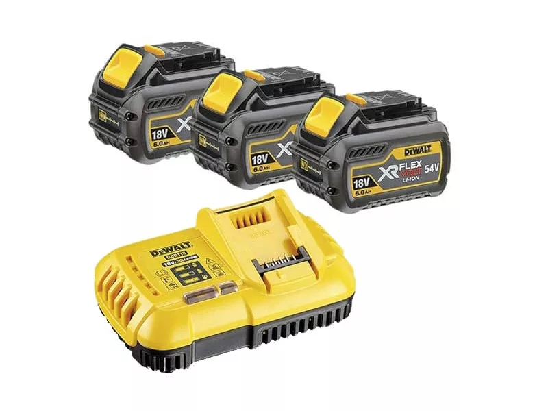 DEWALT FlexVolt Akkumulátor és gyorstöltő szett 18 V (3 x 6 Ah) DCB118T3